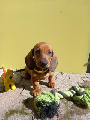 Disponibili da luglio quattro meravigliosi cuccioli di bassotto tedesco nero focato, nati in casa, ceduti solo ad amanti animali, vaccinati, microcippati con Pedigree.