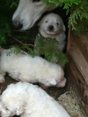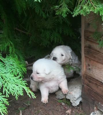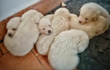Regalo cuccioli meticci, probabilmente un incrocio con pastore maremmano, di tre settimane, maschi e femmine. Dovuto alle restrizioni Covid da adottarsi preferibilmente in zona Petroná e dintorni.