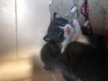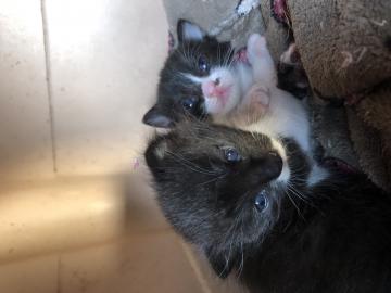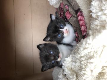 Gattini ancora da svezzare maschio e femmina tuxedo