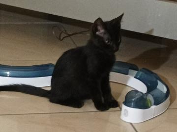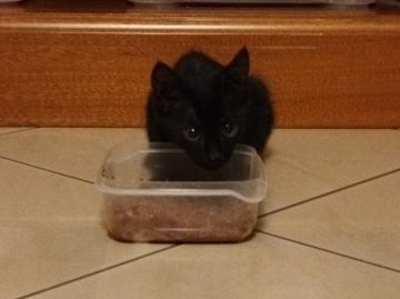 Gattino maschio di circa due mesi. All'inizio un po' schivo, con pazienza e dolcezza in pochi giorni diventa un coccolone; ama tantissimo giocare ed avere la compagnia di qualcuno, cerca il contatto con altri gatti per giocare. Spulciato, sverminato, pulito (usa la lettiera, mangia senza sporcare in giro). Non testata convivenza con cani e bambini. Si trova in provincia di Salerno (Sarno), arriva ovunque in Campania (anche fuori regione ma bisogna organizzare lo spostamento).