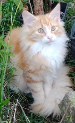 Red tabby di 5 mesi, figlio di Norvegesi, disponibile a cambiare casa. Possibile accompagnarlo in treno anche in regioni lontane.