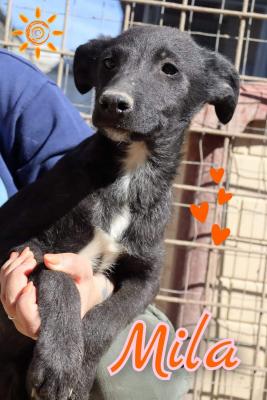 Mila ha un bel manto nero col dorso in parte bianco; ha un fratellino e quattro sorelline. Sono presumibilmente nati a ottobre 2023. Da adulti saranno una taglia medio contenuta sui 18/20 kg. Sono dei cagnolini molto buoni ma un po' impauriti dalle persone; non è corretto che crescano in canile. Non sono assolutamente fobici e siamo certi che con un po' di pazienza acquisteranno fiducia. Non meritano di crescere in un canile ma in famiglia che la possa accudire come si deve.