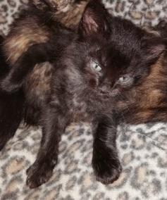Regalo tre bellissimi gattini nati il 9 aprile, due femmine multicolore ed un maschio tutto nero. Dolcissimi, abituati al contatto umano, mangiano già in autonomia l'umido ed iniziano ad usare la cassettina. Eleonora