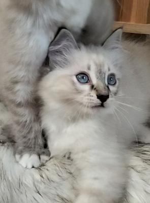 Femminuccia ragdoll tabby mittet ... sarà ceduta a tre mesi con test fiv felv dei genitori..esami feci sverminazione e primo vaccino . Abituata a lettiera e tiragraffi...avrá il libretto veterinario e test giardia .non è in regalo info in privato max serietà.genitori visibili