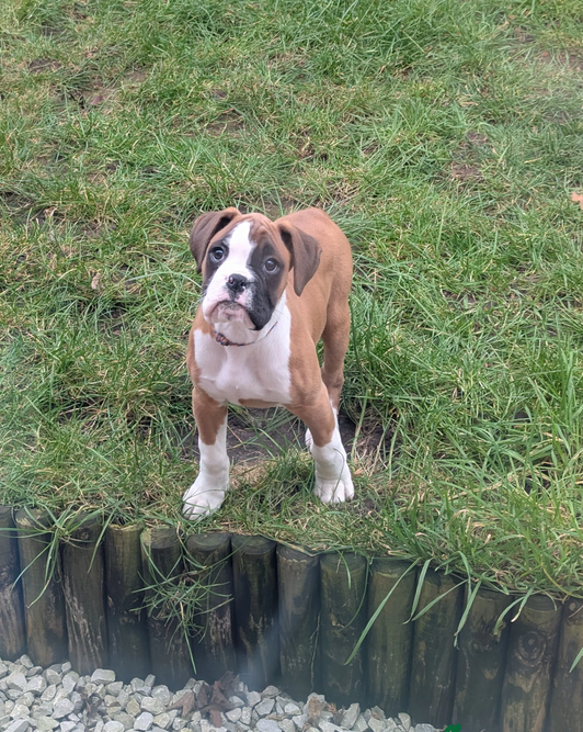 Abbiamo una meravigliosa cucciolata di boxer maschi e femmine registrati Sono principalmente rossi e bianchi e abbiamo una femmina bianca. Tutti i cuccioli hanno la coda intera. Sono state fatte entrambe le iniezioni. Il papà è un noto cane da riproduzione e ha un punteggio cardiaco pari a 0. Entrambi i genitori hanno un temperamento dolce e meraviglioso. I cuccioli possono essere visti con la mamma su appuntamento, chiama o invia un messaggio per concordare un orario e un giorno.