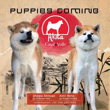 Si accettano ultime prenotazioni di cucciolata di Akita inu colore fulvo . Genitori selezionati da allevamento , esenti da malattie genetiche ereditarie con documentazione visibile , genealogia di rilievo e selezione accurata del carattere. I cuccioli si cedono dopo i 60 gg di vita con tutta la documentazione sanitaria e pedigree ENCI ( vaccinazione, sverminazione, microchip, passaggio di proprietà ) . I cuccioli sono allevati nel rispetto della razza e si cedono con una prima educazione di base ai comandi. Possibilità di vedere cuccioli e genitori previo appuntamento telefonico