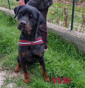 YURI è un giovane rott. Bello ed intelligente, giocherellone, Yuri verrà affidato sterilizzato, testato erlichia e leishmania, vaccinato e microchippato.