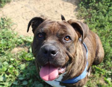 Voluta e presa da cucciola, è stata rubata e ritrovata dopo anni in un campo nomadi. Marta aveva il microchip e si è così risaliti al vecchio proprietario che purtoppo,dopo averlo contattato, ha risposto che non poteva più riprendersela. Così è arrivata a noi. Bisognosa di affetto e di giochi. Marta è amata da tutti, con quel suo musone da riempire di baci, anche se i baci...li da lei! Non ce la fa più a stare chiusa nel box, quando noi volontari arriviamo passa il tempo appiccicata alla rete del box lanciandoti le zampe, leccandoti le mani oppure buttata a terra cercando di farsi grattare. Non ha ancora trovato casa perchè chiunque passi davanti al suo box esclama "ma quanto è grossa, però è davvero bellissima!" ... ma lei ha tutto il diritto di uscire come tutti gli altri. È intelligentissima. Marta si comporta ancora come una cucciolona e ama buttarsi in pancia in aria per farsi coccolare.