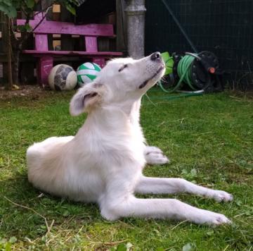 E’ una cucciola meravigliosa sia esteticamente che caratterialmente, ha circa 4 mesi, dolcezza infinita, attualmente si trova in stallo da una volontaria, è bravissima con i suoi simili, va d’accordo con i gatti e persino con i lagomorfi (coniglietti).