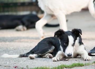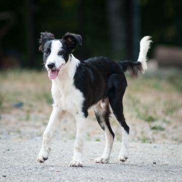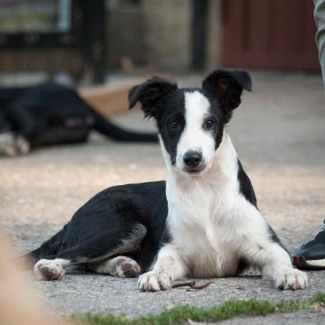BORDER COLLIE INCROCIO, GIACOMINO 5 MESI, FERITO AL COLLO, AGGREDITO DA UN BRANCO DI CANI, CERCA CASA