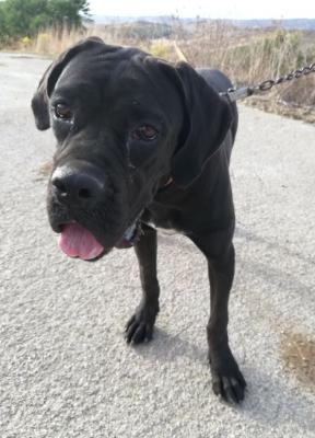 ASIA, cucciolona di Cane Corso di circa 10/12 mesi, vigliaccamente abbandonata in mezzo al nulla, da colui che le ha tagliato la coda, perché questo è lo stupido stereotipo attribuito alla razza.