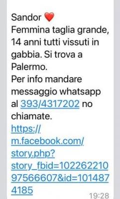 Palermo Sandor è una cagnolona di taglia grande, ha ormai 14 anni ed ha sempre, sempre vissuto dentro il box di questo canile. Quando può uscire dal box non può camminare comunque sull'erba perchè in questo canile non c'è un filo di verde. I box sono umidi, freddi e Sandor per questo ha dei dolori alle zampe, le stanno dando degli integratori per questi dolori. In una casa questi dolori, nati da anni passati di notte e di giorno all'umidità e al freddo, scomparirebbero subito con il caldo, un cuscino morbido e pappe calde e buone, tutte cose che qui non ci sono. Sandor ormai vede poco, è dolcissima, con il muso ormai imbiancato. E' buona con gli altri cani, si fa accarezzare dalle persone e sa andare al guinzaglio, è salita anche in macchina senza problemi per portarla ad una visita. Ha vissuto tutta la sua vita al freddo dentro un box, 14 anni. Da 14 anni non posa le sue zampe sull'erba, non la profuma, non cammina su un prato. Ma il suo muso mite e dolce quando può è sempre rivolto verso di noi. Non lasciamo che muoia qui dentro. Adesso che ha dolori alle zampe, adesso che vede poco, diamole una casa calda, un cuscino morbido e tante carezze, perchè si senta felice e amata, per la prima volta nella sua vita. PER ADOTTARE SANDOR 393 4317202 Roberta.pe9@gmail.com »