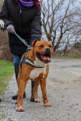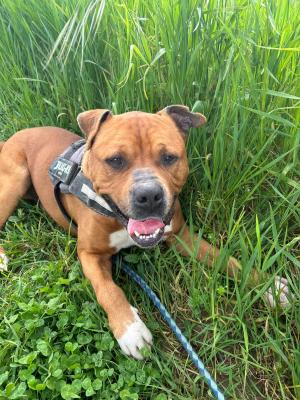 TYSON, 3 ANNI, molto bravo con le persone, bravo in passeggiata e la guinzaglio, non compatibile con cani maschi, si predilige adozione come figlio unico.