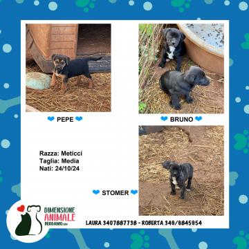 I maschietti: BRUNO, colore nero petto bianco, PEPE, colore nero focato, STOMER, colore tigrato;