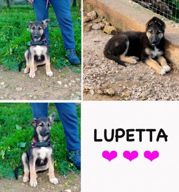 Lupetta, è una cucciola amorevole e giocherellona, ben socializzata con i suoi simili, affettuosa, coccolona come non mai, e dispensatrice di baci a volontà.