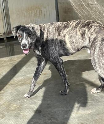 Dolcissima, giocherellona, dolce, esuberante e piena di voglia di vivere. Circa 2 anni e mezzo, compatibile con cani, soprattutto maschi, che possano correre e giocare con lei.