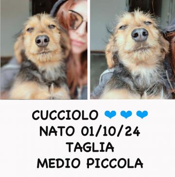 Futura taglia medio piccola, pelosotto, simpaticissimo, musetto buffo, affettuoso, sempre in cerca di coccole.