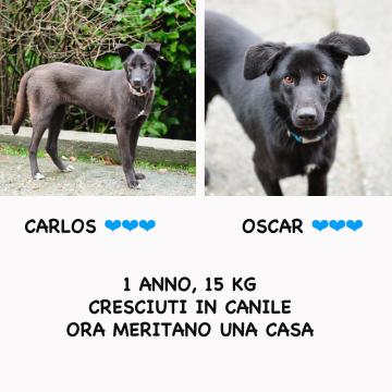 Carlos e Oscar, meravigliosi fratellini, trovati che avevano pochi giorni, recuperati sono stati portati in canile e pur se così piccoli sono cresciuti in un box, conoscendo la privazione, l’isolamento e i latrati dei tantissimi prigionieri come loro.