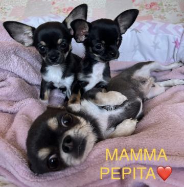 Disponibili ultime due cucciole di Chihuahua tricolore di ottima genealogia All. Rudeboy Kennel Enci & Fci .Le piccole hanno chiusura corretta a forbice e testa tipica a mela.Si cedono microchippate , sverminate,con libretto sanitario, iscritte asl,ovviamente con pedigree Enci .Le cucciole sono nate amorevolmente in casa e tenute fino a 90 gg con la mamma e gli altri cani di casa.I genitori e le piccole sono entrambi visibili a domicilio.Si cedono abituate alle traversine,socializzate, abituate ai gatti ,al guinzaglio e al richiamo,consigli comportamentalie di linguaggio canino ai futuri proprietari .Possibilita' di lasciarle in pensione e asilo in futuro se lo si necessita,i compagnia della mamma nella casa natia (lieti di rivederle e farle stare con mamma,papà e gli altri cani di casa ).Possibilità di corsi comportamentali di linguaggio canino.Assistenza post vendita,possibilità di diete fatte ad hoc da nutrizionista veterinaria. Contatti in pv,astenersi perditempo. Si offre serietà, disponibilità ed esperienza ventennale. Dalle teste a banana dei bull terrier siamo passati alle mele dei chihuahua. *Sapete cosa significa Chihuahua?sarò lieto di spiegarvi una storia poco conosciuta. ALLEVAMENTO AMATORIALE RUDEBOY KENNEL riconosciuto Enci & Fci.