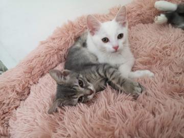 Offro in adozione Gattini Mix Persiano Certosino Hanno 4 mesi maschi con gli occhi ambra, mix persiano pelo SEMILUNGO grigio bianco e cercano una famiglia per la vita! Sono in perfetta salute, già sverminati e vaccinati. Trovati da piccoli, sono stati Allattati a mano e cresciuti in casa. Sono abituati alla lettiera e sono molto affettuosi. NON SI DANNO PER FARE REGALI. Si possono adottare in tutto il NORD ITALIA (si richiede solo contributo per la staffetta). Solo in appartamento in sicurezza (No giardino / villette, no piano terra), previo controlli di preaffido e postaffido.