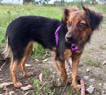 È una taglia piccola, circa 1 anno,5 kg Molto affettuosa , va d’accordo con i gatti.