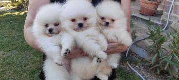 Disponibili alla prenotazione tre bellissimi maschietti di volpino di Pomerania, due crema e uno bianco ottico. Hanno 53 giorni, verranno ceduti con vaccinazioni, microchip, sverminati, iscrizione anagrafe canina, certificato di buona salute, pedigree ENCI di alta genealogia perciò HANNO UN PREZZO IMPORTANTE