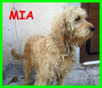 MIA, tenerissima mix lagottina-segugia sui 5 anni, circa 18 kg, utilizzata in Abruzzo per la caccia al cinghiale, finchè uno di loro non l'ha caricata, ferendole in modo serio la zampina posteriore destra. E' stata curata ed è guarita quasi perfettamente, ma quel "quasi" ha segnato il suo destino. Mia non può più cacciare, non può più correre come prima...quindi non è più buona per la caccia...quindi non serve più. Fortunatamente il suo proprietario ha avuto il buon cuore di non farla sopprimere, ma ce l'ha ceduta ed ora la dolce Mia cerca una casa dove vivere serenamente. E' una cagnolina buonissima ed affettuosa, compatibile con i suoi simili e con i gatti, è sterilizzata, la piccola menomazione alla zampetta l'ha resa un pò claudicante e dovrà portare una scarpina protettiva, ma per il resto è sana come un pesce e negativa alla leish. Ora le servono solo tante coccole ed amore per farle dimenticare la brutta avventura che le ha cambiato la vita!!!