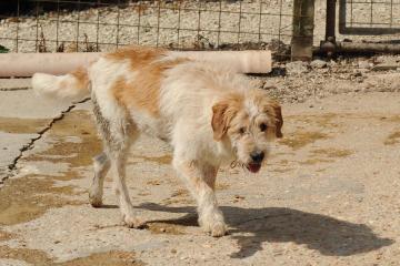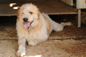 Rusty è un pastore bergamasco bellissimo, dal pelo morbido color bianco e oro, pesa circa 25 Kg.
