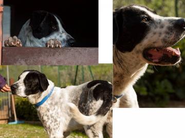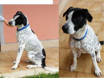 Ringo ha circa un anno, è equilibrato e buonissimo con le persone e le cagnoline, dominante con i cani maschi e non ama i gatti, è un incrocio alano - molosso e pesa 43 kg, va al guinzaglio ed è affettuosissimo. Non è adatto alla guardia, nonostante l'aspetto, perché è un patatone.