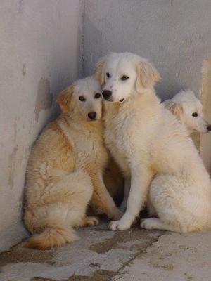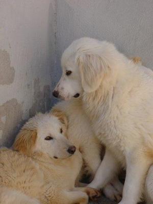 Anche sua sorella Malvasia, che si vede in una foto con lui, cerca casa. E’ anche lei una bellissima incrocio Golden bianca, fine e tenera.