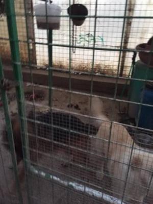 ADOZIONE DEL CUORE, URGENTE: SALVATORE E ROCKY ERANO DUE CANI DI CASA, VIVEVANO TRA CASA E GIARDINO, SALVATORE E’ STERILIZZATO. SONO MOLTO BUONI, SANNO ANCHE ANDARE AL GUINZAGLIO, MA LA LORO VITA ALL’IMPROVVISO E’ FINITA IN UN INCUBO. IL LORO PADRONE MUORE, E I PARENTI LI HANNO RICHIUSI ENTRAMBI IN QUESTO TUGURIO, DOVE SI ESITEREBBE A CHIUDERE UN POLLO. UNA GABBIA BUIA E BASSA, DOVE IL SOLE NON ENTRA, SPORCA, CON SPESSE GRATE. NON GLI APRONO MAI QUESTA GABBIA, LE CROCCHETTE VENGONO GETTATE A TERRA E LORO DEVONO MANGIARE DAL PAVIMENTO SPORCO. VI PREGHIAMO LA LORO ADOZIONE E’ URGENTISSIMA. ROCKY E’ IL PASTORE TEDESCO, HA 4 ANNI, E FUORI DI QUI SAREBBE UN BELLISSIMO CANE. SALVATORE E’ QUASI BIANCO, TENERO E BELLO, FORSE HA 2 ANNI. ABBIAMO PIETA’ DI LORO, AVEVANO UNA FAMIGLIA, ERANO LIBERI E VIVEVANO IN CASA. NON PUO’ CONTINUARE COSI’ LA LORO VITA. LA CRUDELTA’ DEI LORO PARENTI GLI HA TOLTO TUTTO, PERFINO l’ARIA, LO SPAZIO, IL CIBO. CERCHIAMO STALLO O ADOZIONE, SALVIAMOLI. Ecco la fine che fanno quando il padrone muore. Uno schifo di tugurio, basso ,dove anche il sole rifiuta di esserci ! Per ora le crocchette sono buttate li per terra, ma tra poco non avranno piu’ nemmeno quelle. Vi prego uno stallo urgentissimo. inf antonietta 3489398848