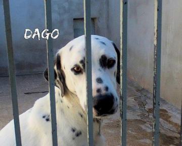 Dago è uno splendido dalmata di taglia medio grande, almeno 35 kg, imponente, elegante, nato probabilmente nel 2014.