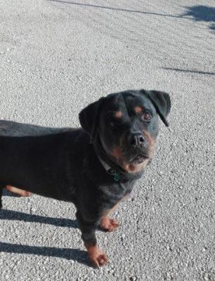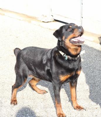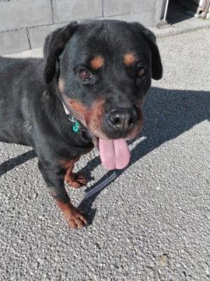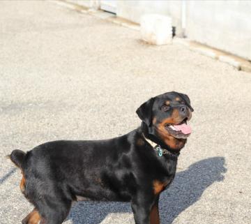 NACHA, SPLENDIDA ROTT PURA DI 2-3 ANNI, STERILIZZATA, DOLCISSIMA, E’ STATA LEGATA DI NOTTE AD UN ALBERO FUORI DAL CANILE.