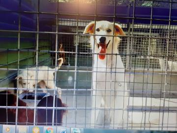 queste 2 spendide sorelle, facciamo girare questo appello è la loro unica possibilità per farle uscire dal canile. Sono andata in canile per ritirare un cagnolino che ha trovato adozione, mentre facevo le foto ad un altro piccolo sfortunato, per riprendere meglio, mi sono appoggiata alla rete del box dietro di me, nello stesso momento, sento una zampa sulla mia spalla che insistentemente voleva attirare la mia attenzione mi sono girata e ho visto queste due splendide cucciolone, due nuvole bianche, una delle due aveva allungato la zampa attraverso la rete e voleva che le prestassi attenzione a tutti costi, sembrava che mi dicesse “ fai una foto anche a me, fammi uscire, regalami la libertà” . Me lo chiedeva con tanta forza, come se avesse capito che quella foto era la sua unica possibilità per venire fuori da quella prigione, l’unica che la vita le offriva. Tutto il tempo che sono stata davanti alla rete lei ha continuato ad allungarmi con forza quella zampa che era completamente fuori dalla rete a farmi sentire la disperazione di non voler essere abbandonata. Vorrei tanto fare qualcosa per queste due sorelle, all’interno del box ho visto un’altra femmina bianca, la mamma, saranno arrivate cuccioline nel canile circa 10 mesi fa e li rimarranno per sempre se non si riesce a tirarle fuori, sono bellissime, mix golden, affettuose e intelligenti. Non aggiungo altro le foto sono eloquenti. Si trovano in provincia di Napoli, ma per una buona adozione si spostano anche fuori regione. Per contatti 3470577551 dopo le 18,00, se non rispondo inviare messaggio, sarete richiamati