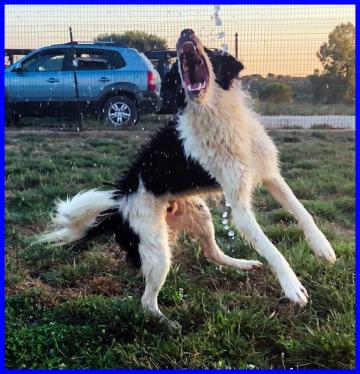 Ancora un appello per il bellissimo PETRUX, simil border, anche se di dimensioni un pò più grandi, infatti misura sui 62 cm al garrese, ha quasi 2 anni e mezzo, è sano e sterilizzato. E' già un pò che è con noi, arrivò terrorizzato, oggi possiamo dire che è molto cambiato. Riesce ad aprirsi con le persone anche se inizialmente è ancora un pò diffidente. Ha imparato ad andare sia con il guinzaglio che con la pettorina. Con i suoi simili generalmente va d'accordo, da valutare se in presenza di un maschio di grossa taglia. Con i gatti possiamo fare prova di compatibilità se serve. Petrux è un gran giocherellone ed adora l'acqua. Cerchiamo una famiglia adatta per questo bel giovanotto!!