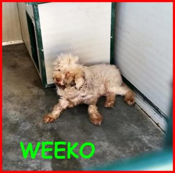 AIUTO PER WEEKO, LAGOTTINA ANZIANA E SOFFERENTE CHIUSA IN CANILE.