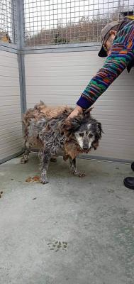 URGENTISSIMA Questo e' quello che e' rimasto di questa povera nonnina di 15 anni..il suo passato non si sa'..so che vive dentro questo box in compagnia dei suoi escrementi...condannata a una vita di merda..nel vero senso della parola...senza aver commesso nessun reato sui 12 kg.sterilizzata..microcippata..Canile di Pietrabbontante Provincia di Isernia... Nata nel 2007 Femmina taglia medio piccola X info Tina 3891722167....