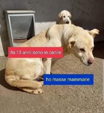 ILARY SIMIL LABRADOR 13 ANNI 25/30 KG TAGLIA GRANDE Ilary è in canile da quando era giovanissima. In quel box che divide con una femmina anziana come lei ci ha passato tutta la vita. Ha delle masse mammarie. Se nessuno chiamerà presto per lei, in quel box dove è cresciuta, dove ha trascorso tutta la sua vita…morirà…in silenzio…da invisibile come è sempre stata. Adozione del cuore prima che sia troppo tardi. Adottabile centro nord Italia. Maria 340-5071137