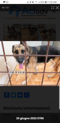 Alexia è una bellissima pastora tedesca, sembra quasi pura, è buona, dolce, felice solo quando ci vede passare. Perchè allora nel suo cuore si accende una speranza, di non essere dimenticata. Lei era nata per stare vicino all'uomo, per avere uno scopo nella vita nell'amarlo e essergli fedele, con la sua intelligenza, i suoi occhi buoni da amica. Così sono i pastori tedeschi.