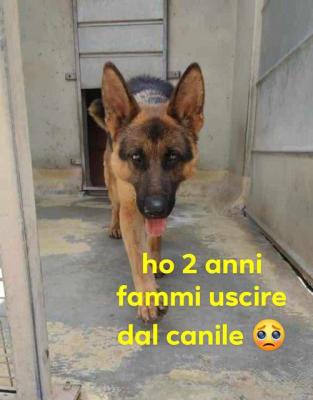 SPILLO PASTORE TEDESCO 2 ANNI IN CANILE Spillo è stato trovato vagante in una campagna di Roma con un collare talmente stretto che gli ha lacerato il collo. Era affamato e disorientato, ha rischiato più volte di essere investito. Chi lo ha trovato lo ha portato in canile. Spillo è in buona salute, adora andare in passeggiata con i volontari del canile ma soffre veramente tanto il box. Ha davvero bisogno di una famiglia che lo inondi d’amore…è molto vivace, allegro e coccolone…merita davvero una famiglia tutta per lui. Adottabile centro nord Italia. Maria 340-5071137