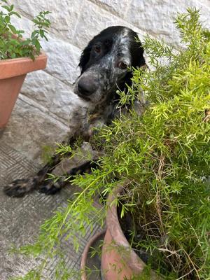 Non so nulla di te,so solo che il tuo “bravo” padrone cacciatore ti ha mollato sicuramente xche nn eri bravo nella caccia. Ti ho trovato così,in paese ,eri appena scappato xche ti hanno visto dormire e una brava persona ti ha gettato un secchio d’acqua e tu sei scappato nascondendoti tra i vasi.Non stavi facendo nulla di male,eri lì che cercavi un posto per riposare,o forse stavi aspettando il tuo padrone non c’era bisogno di fare quel gesto .Purtroppo come dico sempre il Signore ha creato la razza peggiore,quella umana. E’un setter di razza,maschio avrà 2 anni ,buonissimo con tutti i suoi simili e con gli umani,per favore non lasciamolo per strada ,chi conosce i setter sa che sono cani speciali. 3383832810 Foggia
