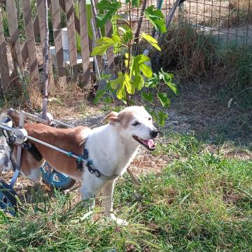 Sono una cagnolina disabile, mi sono adattata subito al mio carrellino.. peso 17 chili e ho 7 anni circa.. Non ho malattie infettive. Vado d’accordo con tutti, anche con i gatti.. Sono passati diversi anni, tanti appelli per me, ma nessuno si è mai interessato.. Per fare la pipì serve una mamma che mi aiuti premendo la mia vescica.. Per le feci riesco da sola..