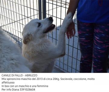 MASCHIO DI 11 ANNI E 20 KG DI PESO, MIX SPINONCINO E' uno dei cani del Canile di Fallo - FORZA CON LE CD NE STANNO MORENDO TANTI ... Socievole e coccolone condivide il box con una femmina e un maschio. Tutte le info in basso sulla foto