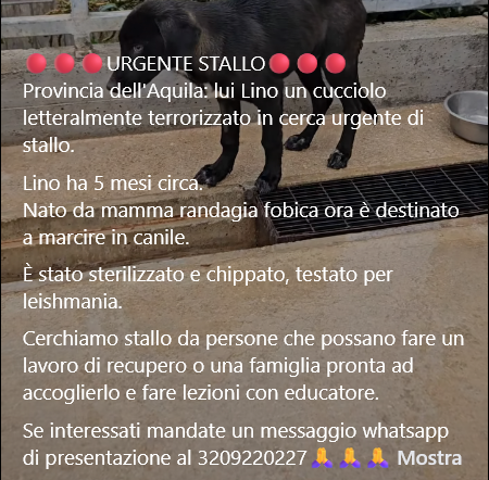 ERGASTOLO IN CANILE URGENTISSIMA ADOZIONE DEL CUORE
