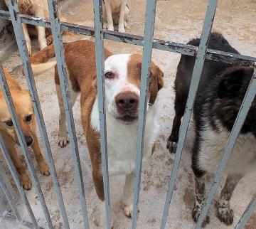 Le pareti dei box sono alte e di cemento e i cani non vedono niente del fuori. La povera Betta sopravvive così da sei anni.