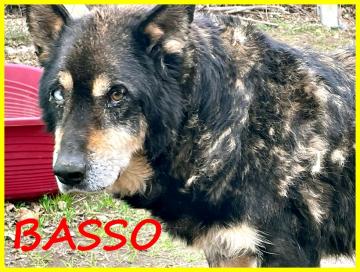 BASSO lo abbiamo recuperato da un canile. E' un lupacchiotto di almeno 14 anni, con un occhio azzurro ed uno marrone,un nonnino stanco malmesso, che si porta dietro tutti i segni dell'età e della lunga permanenza in gabbia. E' positivo alla leishmania ma è già in cura, le sue vecchie ossa gli danno qualche problema, è un pò lento nel camminare e non può stare troppo in piedi. Caratterialmente è molto riservato e gli piace stare per i fatti suoi, ma da quando è con noi si sta ammorbidendo e la sera viene a prendersi il suo biscottino con piacere. Per Basso ovviamente chiediamo un'ADOZIONE D'AMORE. Lui ha solo bisogno di pappe buone, un bel cuscino morbido ed un giardino dove stare un pò in libertà ed in pace per l'ultimo tratto della sua esistenza!