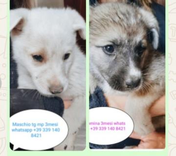 Questi cuccioli meravigliosi, hanno tre mesi, i fratelli sono stati tutti adottati, rischiano il canile. Il maschietto è quello di colore bianco, l'altra è una femminuccia. Vaccinati , microcrocippati Si trovano in Campania, sono una taglia media piccola. Si danno in adozione dopo preaffido.