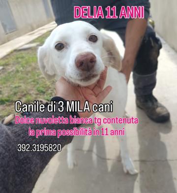 DELIA , dolce nuvoletta bianca tg contenuta che ci fa sepolta lì dentro da 11 anni?!IN CANILE DI 3 MILAcani una nonnina bravissima dolce affettuosa socievole..la sua prima possibilità in 11 anni …com’è possibile ? ci chiediamo tutti ..in un canile privato senza volontari purtroppo è la normalità ..tante meravigliose creature vivono senza realmente vivere , senza che nessuno si accorga di loro , della loro tristezza , del loro dolore ..giorni mesi anni di niente nel nulla in una dimensione a parte dove si sentono solo abbai di disperati senza speranza o silenzi di disperati ormai rassegnati . Delia è dolce , buona , delicata , una fantastica candida creaturina cui vorrei regalare un riscatto , un bellissimo riscatto , una famiglia che l accolga con tanto l amore perché non vorrei mai deludere quegli occhi speranzosi
