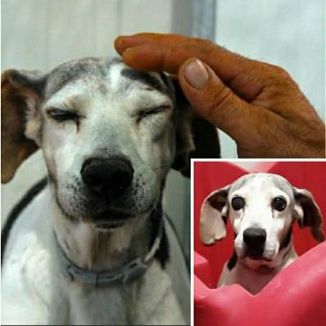 OLIVER 10 ANNI, CIECO, VIVE IN RIFUGIO DA QUANDO ERA UN CUCCIOLO.