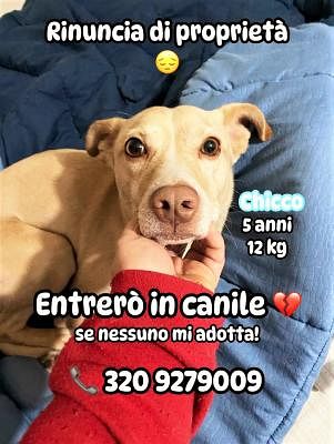 CHICCO, 5 ANNI, 12 KG, CRESCIUTO IN CASA DOVRA' ANDARE IN CANILE...AIUTIAMOLO.